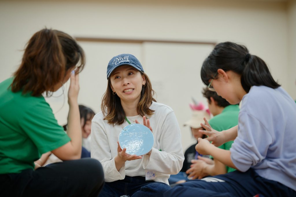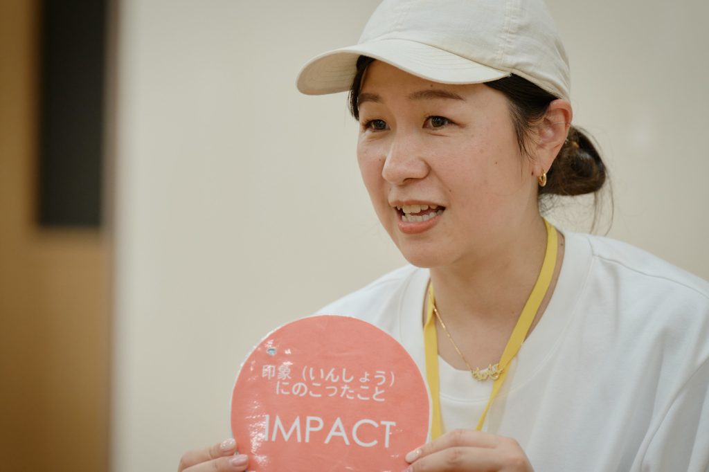 最後は、今日の振り返りです。活動の思い出をジャーナルに記録したあとは、印象に残ったことや新しく学んだこと、うまくいかなかったと感じたことなどを、テーマに沿って発表しあいます。当社のデザイナーが特別にデザインしたオリジナルスタンプを押してもらって、すべてのアクティビティが終了です。